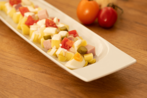 Salade de pommes de terre aux petits légumes et pesto d’herbes fraîches