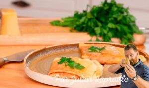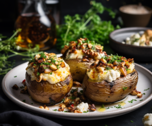 Courgettes farcies à la crème de pommes de terre, lard et persil